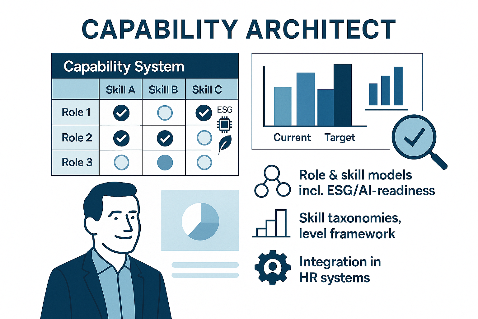 • Rollen- & Fähigkeitsmodelle inkl. ESG-/AI-Readiness